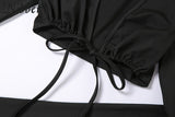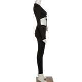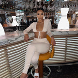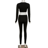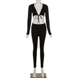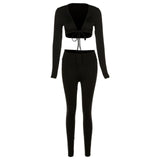 2 Piece Set Lace Up Long Sleeve Crop Top+Skinny Pants