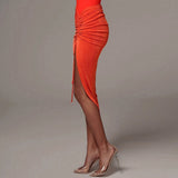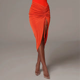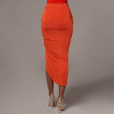 Ruched Bodycon Midi Skirt