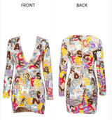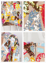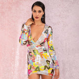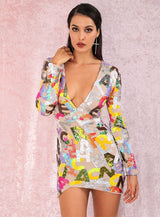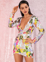 V-Neck Letter Sequins Bodycon Mini Dress