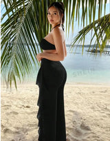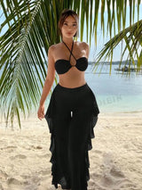 Bikini And Cover Up Set Plain Criss Cross Halter With Ruffle Pants Bandeau Swimsuit Women 2024 Black/White Swimwear Bathing Suit