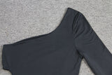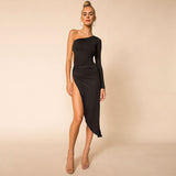 One Shoulder Side Slit Bodycon Midi Dress