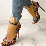 Paisley Peep Toe Ankle Strap Thin Heeled Sandals