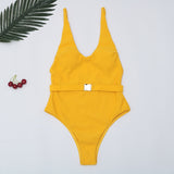 One Piece Swimsuit with belt is a beautiful one-piece with an integrated belt design.