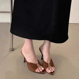 Sexy Pointed High Heels 2025Summer New Style Trendy Open Toe Casual Shoes Luxury Metal Designer Women Comfortable Office Sandals
